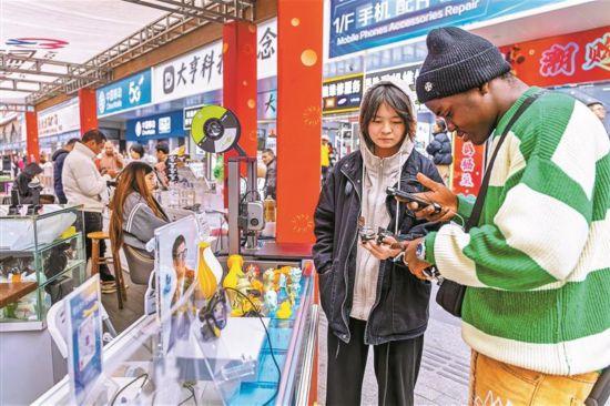 深圳华强北极具科技感的“广货”琳琅满目,吸引外商前来采购。深圳特区报记者 赖犁 摄
