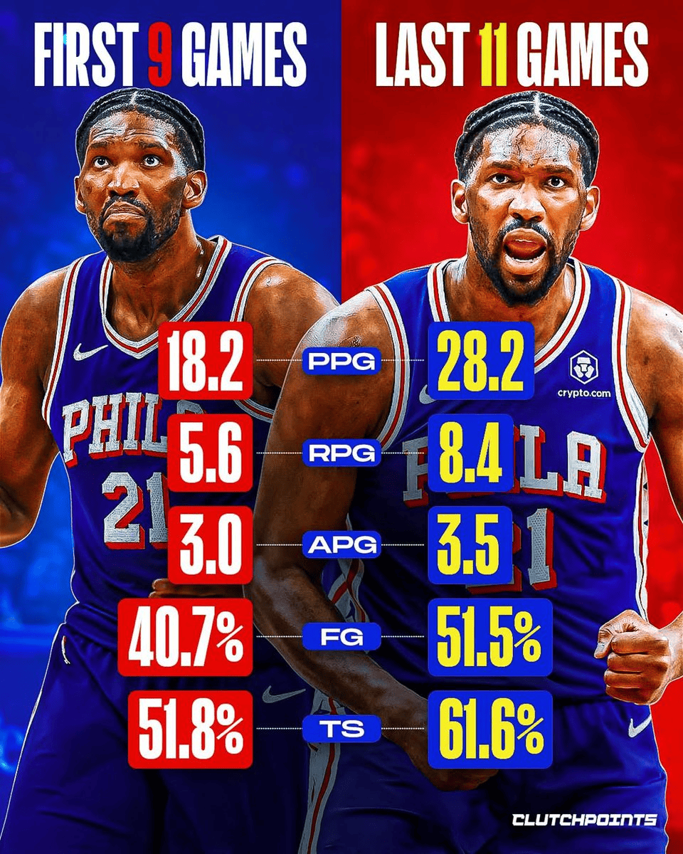 其写道:“许多人曾对恩比德失去信心。上赛季几乎缺席整个赛季后,这位76人内线球员本赛季开局缓慢。在前九场比赛中,他场均仅得18分,投篮命中率不足41%,随后又因膝盖酸痛缺席了十一月的大部分比赛。